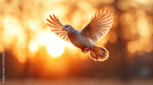 © Ika, Naklejka premium White dove in flight at golden sunset (1)