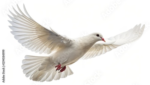 Fototapeta premium White Dove in Flight Full Wingspan, Peace Symbol, Isolated Background, Bird...