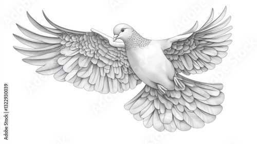 Obraz premium White dove in flight, peaceful background, symbolizing hope, perfect for peace themes