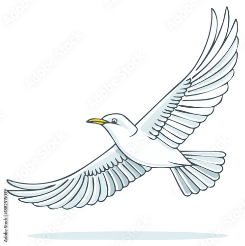 Obraz premium White dove in flight with wings spread wide, symbolizing peace and freedom