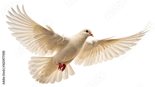Obraz premium White Dove in Mid-Flight with Wings Spread