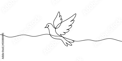Fototapeta premium White dove in one continuous line drawing. Bird symbol of peace and freedom in simple linear style. Concept for national labor movement icon. Editable stroke. Doodle outline vector illustration