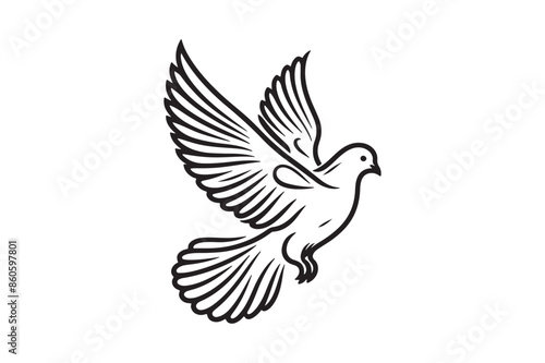 © Koushik, Obraz premium White Dove Linear Silhouette Vector