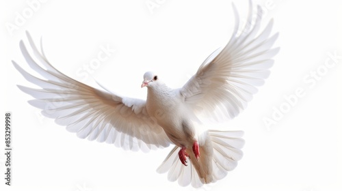 © Irina, Fototapeta premium White dove pigeon bird isolated on white wallpaper background