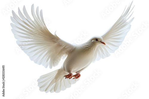Obraz premium White dove soaring on white backdrop