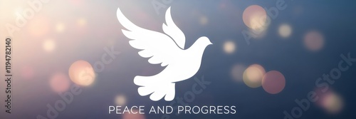 © happie, Obraz premium White dove soaring through a gradient sky with bokeh