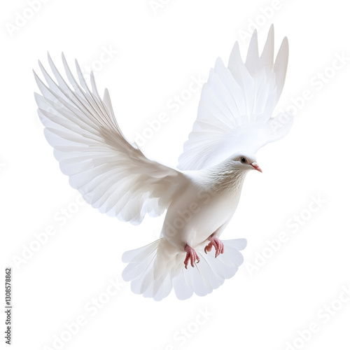 Obraz premium White Dove Spreading Wings in Flight on transparent background.