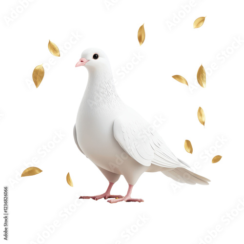 © Oatkhaphon, Obraz premium white dove surrounded by golden leaves, symbolizing peace and hope
