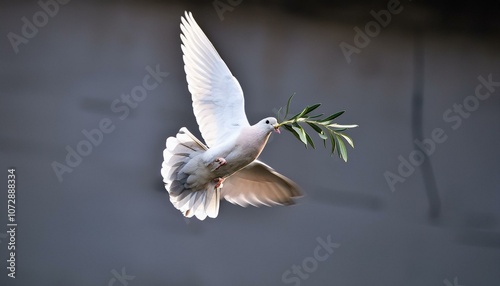 © Niser, Obraz premium White dove with an olive branch, symbolizing peace