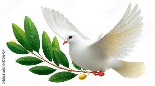 Obraz premium White Dove with Olive Branch Watercolor Painting