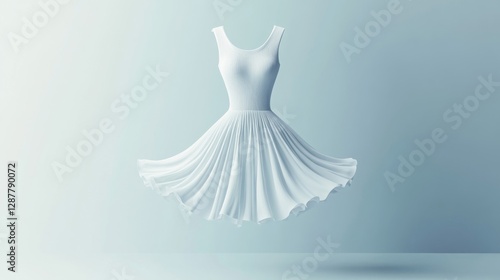 © Sleeping Carbuncle, Naklejka premium White Dress 3D Render Floating on Light Blue Background