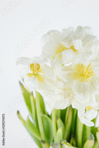 Fototapeta premium White dried tulip flowers close up