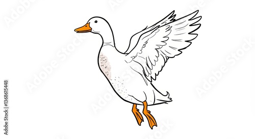 © ArtyKris99, Obraz premium White duck flying with wings spread in a playful manner