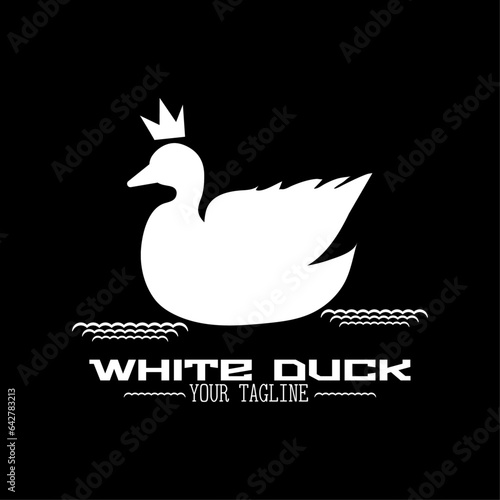 © Nataliia Armada, Fototapeta premium White duck in a crown with waves logo with text on black background