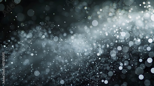 © Berkah, Fototapeta premium White dust element bokeh pattern flying overlay in a dark. Dust particle on black abstract background.