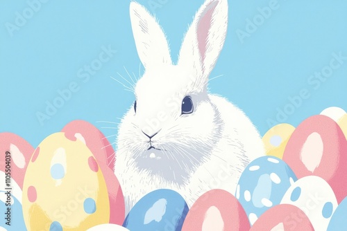 Obraz premium White Easter Bunny Amidst Pastel Eggs