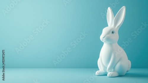 Obraz premium White Easter Bunny figurine on a light blue background.