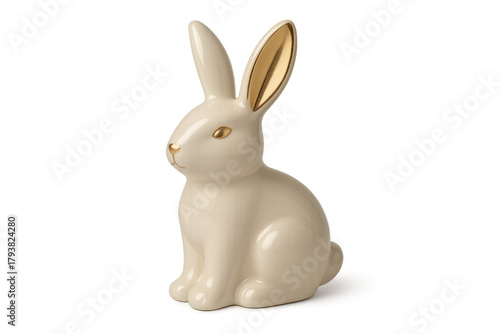 © PerfectPhoto, Fototapeta premium White easter bunny figurine with golden details