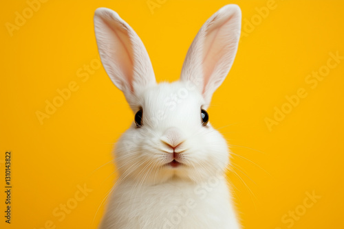 © Vilma, Obraz premium White Easter bunny on yellow background