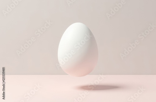 Fototapeta premium White Easter egg floating above a neutral background, modern and surreal
