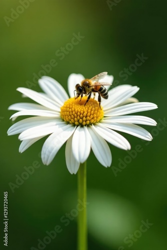 © ຈໍາປາ ຈໍາປາ, Obraz premium White echinacea flower with a small bee collecting pollen, collect, flower, pollination