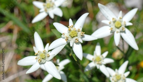 © Cius, Fototapeta premium White Edelweiss Flowers in Meadow.