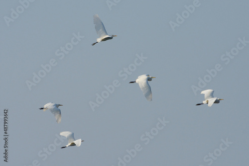 Fototapeta premium white egret bird flying migration when winter visitor season.