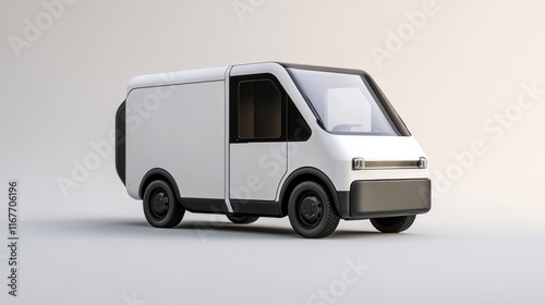© SlashStd, Naklejka premium White electric delivery van, modern design, isolated on white background.