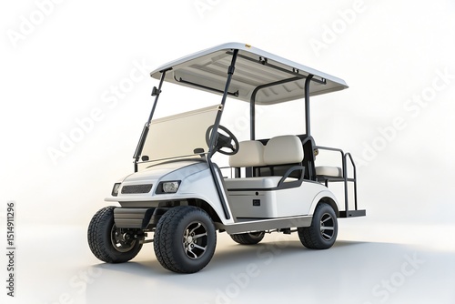 © Muhammad, Fototapeta premium White electric golf cart on a green golf course