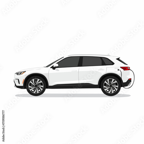 © Abde, Fototapeta premium White Electric SUV Charging Side Profile Illustration
