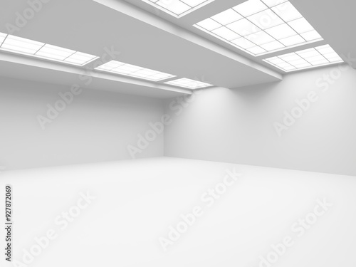 Fototapeta premium White elegant empty space. White wall room background. Abstract interior
