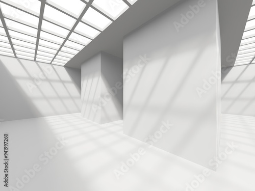 Obraz premium White elegant empty space. White wall room background. Abstract interior