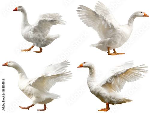 © Maestro, Obraz premium White Embden Goose Flapping Wings