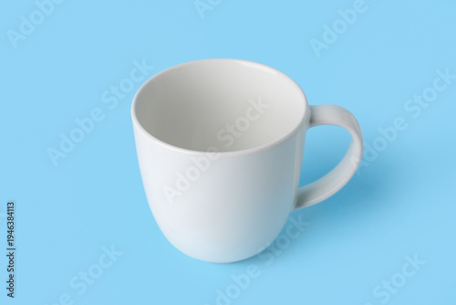 © Pixel-Shot, Fototapeta premium White empty ceramic mug on blue background