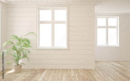 Fototapeta premium White empty room. Scandinavian interior design. 3D illustration