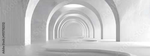 Obraz premium White empty room with modern arched tunnel design, clean architectural...