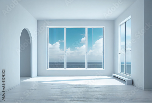 © slonme, Obraz premium white empty room with sea view Generative by ai
