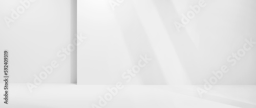 Obraz premium white empty room with sunlight and shadows background, empty studio room background