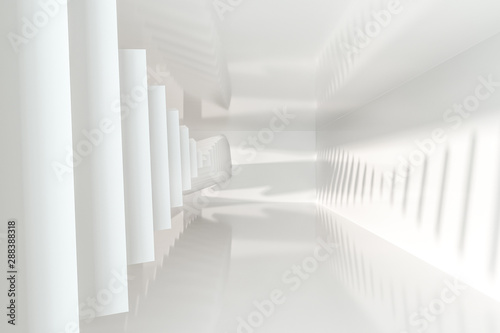 Obraz premium White empty room with sunshine from the side, 3d rendering