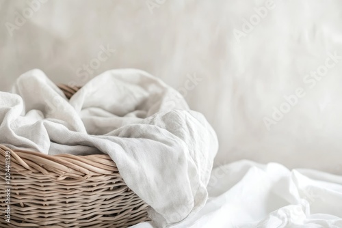© tolem929, Obraz premium White fabric in a wicker basket on white fabric.