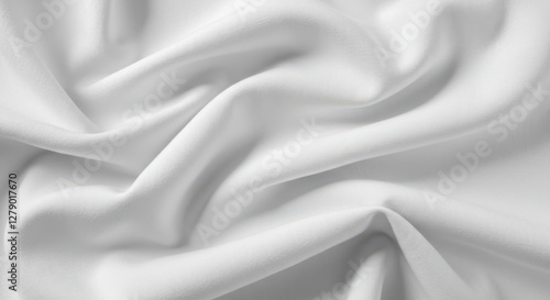 Fototapeta premium White fabric texture, crumpled linen, soft wrinkles, subtle shadows, minimalist backdrop, high contrast, macro detail, fine weave pattern, clean aesthetic