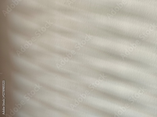 © Natchaporn, Naklejka premium white fabric texture Light passes through the blinds and hits the cream-white wall, creating patterns and shadows.