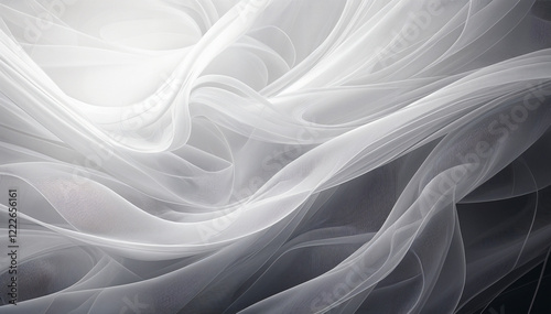 © Aillusionist, Obraz premium White fabric waves textured with a cracked surface pattern.