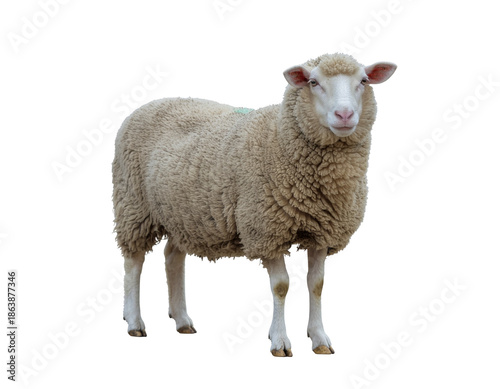© Wawan, Fototapeta premium White-faced fluffy sheep standing calmly