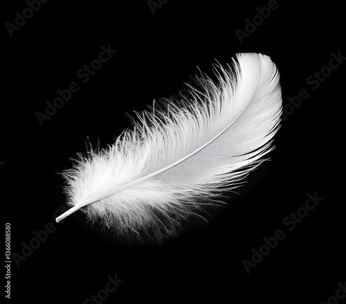 © ulum, Obraz premium White Feather Detail on Black Background Symbolizing Lightness and Fragility