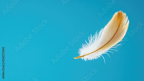 Obraz premium White feather floating against clear blue background