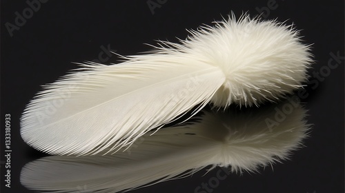 © Cah, Obraz premium White Feather for Studio Reflection, Macro Shot.