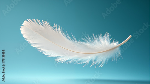 © D-stock photo, Obraz premium White feather isolated on blue background. 3d render. Closeup.