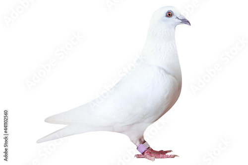 © stockphoto mania, Fototapeta premium white feather of speed racing pigeon isolated on white background
