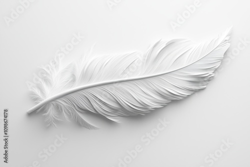 Obraz premium White feather on a clean white background, emphasizing simplicity and purity